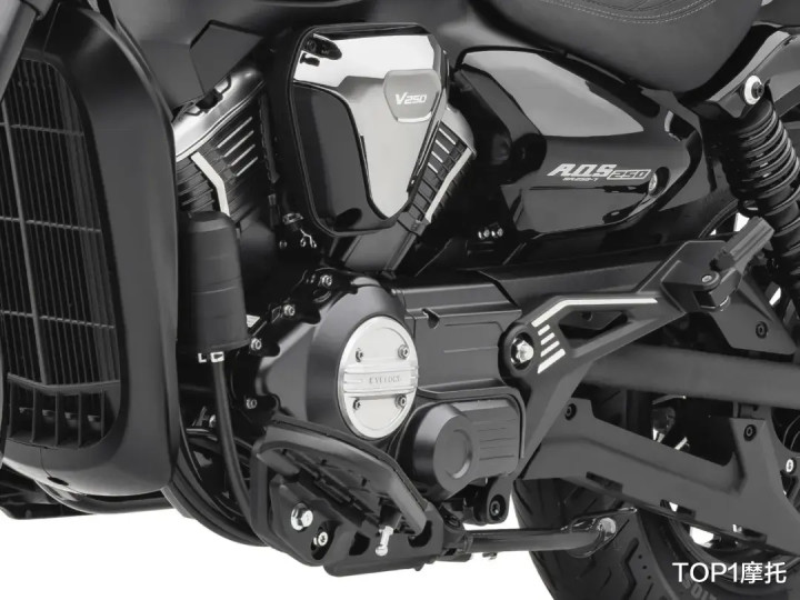 你们经常说无V缸不巡航,赛科龙AQS250搭载的就是一台V缸发动机,而之前宗申系是没有250V缸发动机的现在却有了。申报信息显示,这台V缸发动机250的排量最大功率20.5kw,至于来自哪里你们自己看吧。相较于此前RA2和RA250的单缸发动机,新的V缸发动机性能有大幅度提升,同时V缸还有更好听的声浪以及更好的视觉效果,满满当当的发动机舱充满着力量美感。另外,这台发动机还搭配了AMT的变速箱,巨大的前脚踏板更代表着高舒适性,也代表着这台车不需要脚踩换挡。